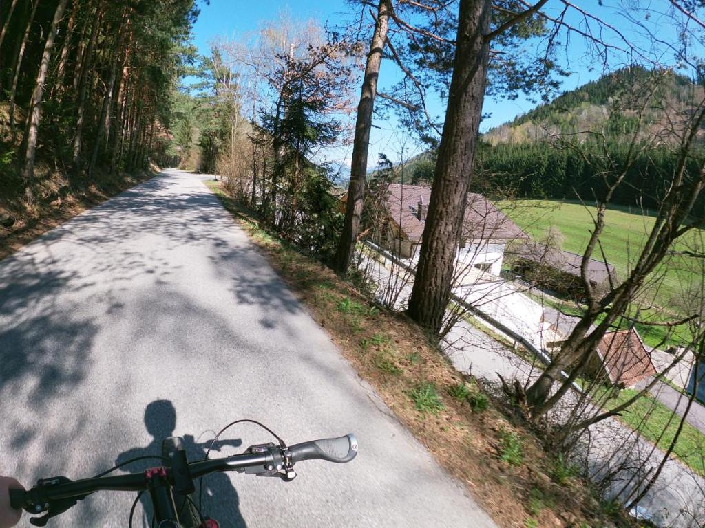 Nun zweigen wir auf eine keine, unbekannte Straße kurz vor dem Gasthof Badl, links hinauf, noch ein paar Höhenmeter müssen bewältigt werden. Dafür erreichen wir eine Nebenstraße nach Häusern, die uns weg von der vielbefahrenen Hauptstraße bringt.