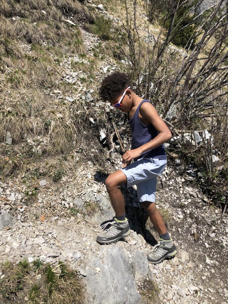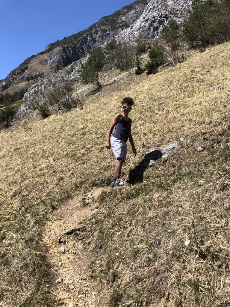 Hier suchen wir einen zweiten Geocache, dann gehts richtig zur Sache. Der Weg wird durchgehend steil, der Pfad zieht in kurzen, knackigen Serpetinen ziemlich direkt den Berg hinauf. Dies, in Kombination mit der warmen Nachmittagssonne ist nicht wenig anstrengend…