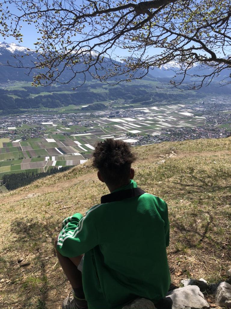 Als Belohnung für die „Mühsal“ beim Aufstieg bekommt Letu auf dem Heimweg noch ein Eis, das erste in der Absamer Eisdiele.