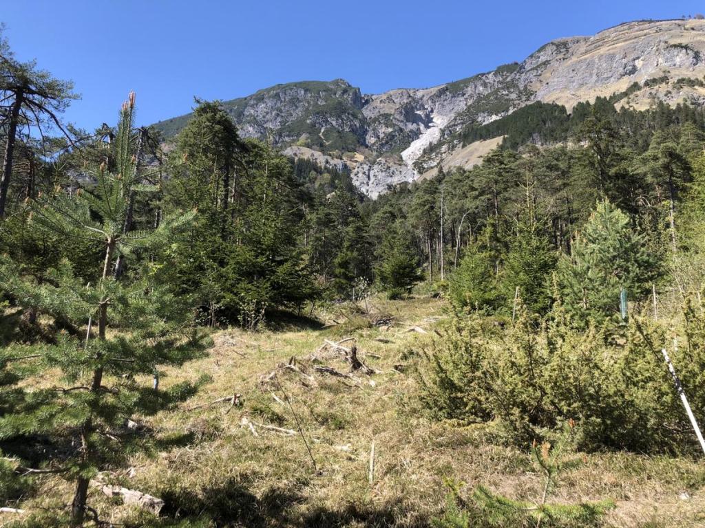 Wir stoppen jedoch ein wenig früher, auf einer schönen Anhöhe mit Buchen. Der Weg von hier zu Hütte schaut extrem ausgesetzt aus, und das will ich heute mit Letu nicht angehen, das machen wir schon noch mal.