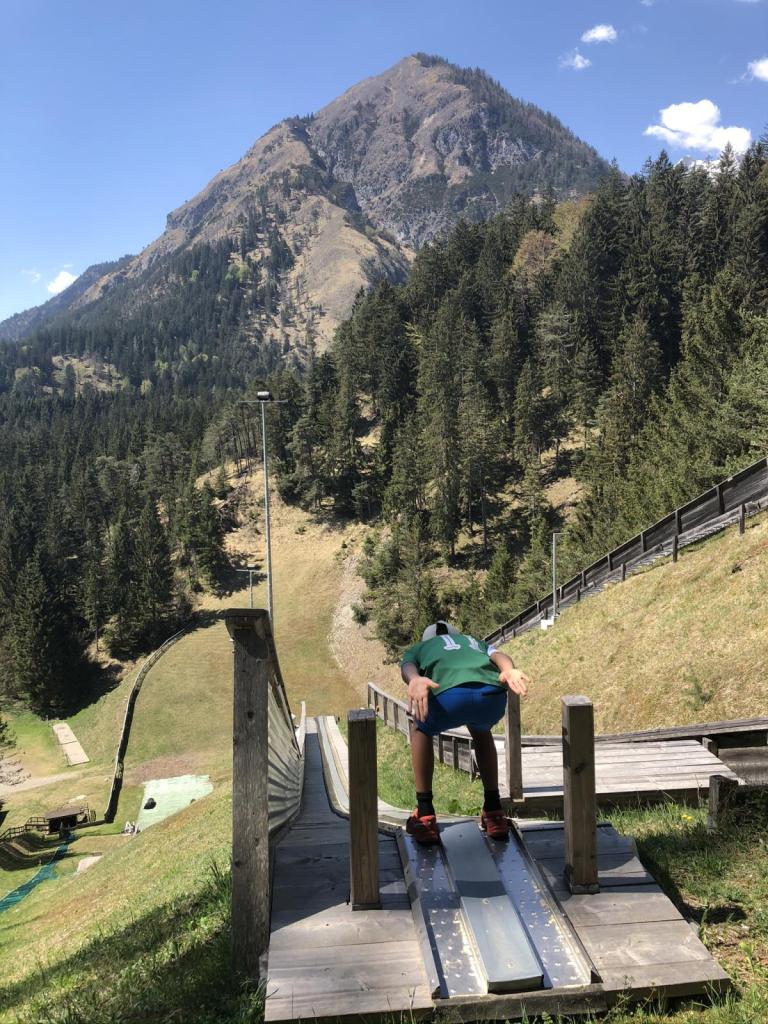 Im Team mit meinem Junior starten wir beim Parkplatz bei der Walderkapelle, steil steigen wir neben der Sprungschanze hinauf in kühlenden Wald, in Richtung Winklerhütte.
