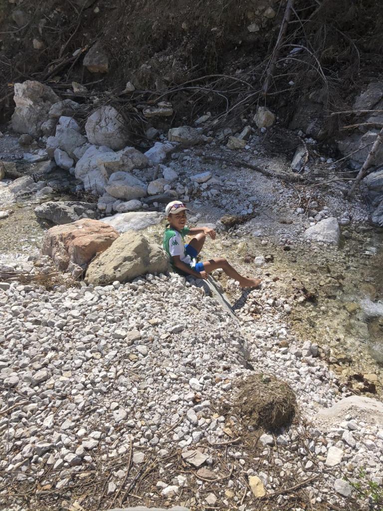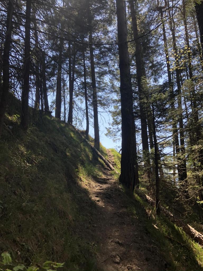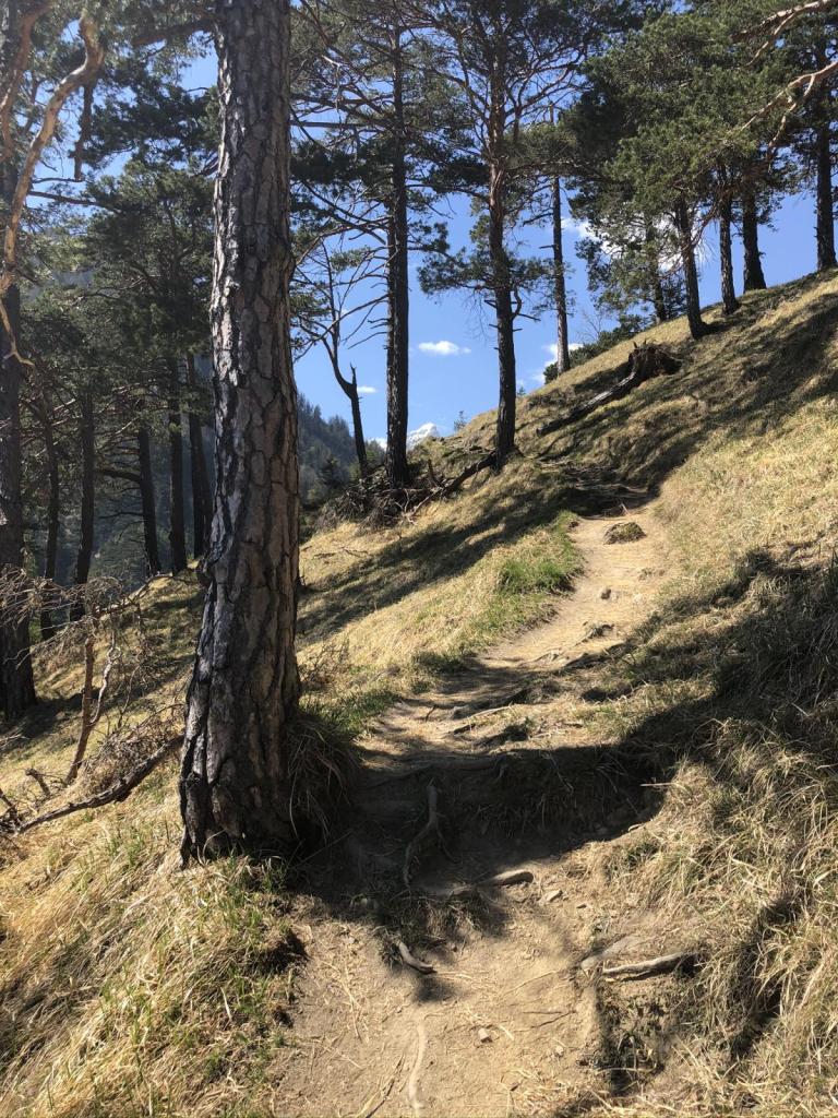 Wir konzentrieren uns auf den schmalen Steig, trotzdem rutscht Letu einmal aus und schürft sich das Wadl auf… trotz Schmerz nochmals Glück gehabt.
