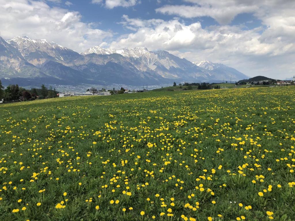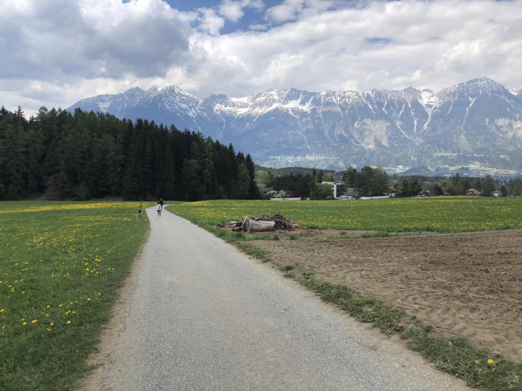Zuerst folgen wir ein Stück einem asphaltierten Wiesenweg, bald schon erreichen wir den Oachkatzlbrunnen. Von hier müssen wir noch ein Stück durch den Wald, dann erreichen wir den „Bilderweg Lans“, einen schön gestalteten Kreuzweg.