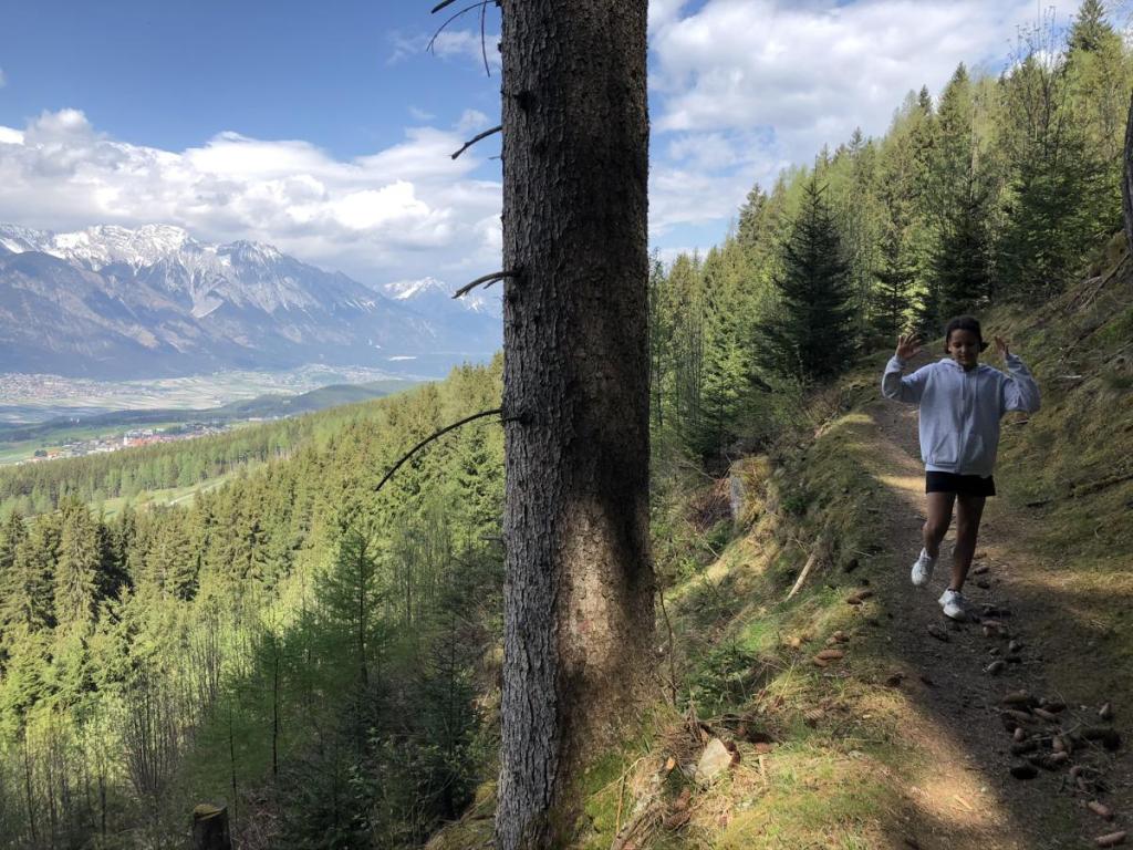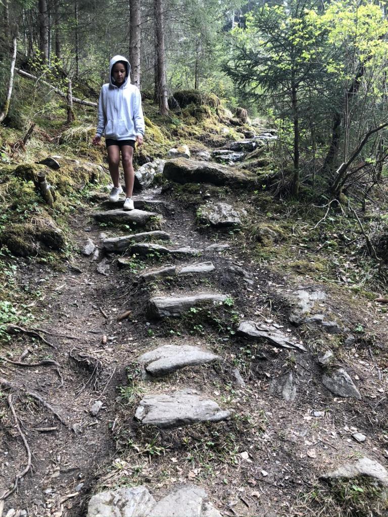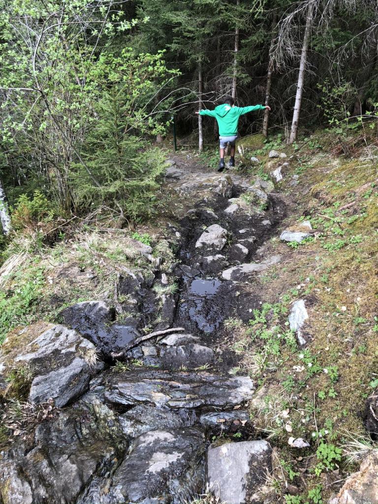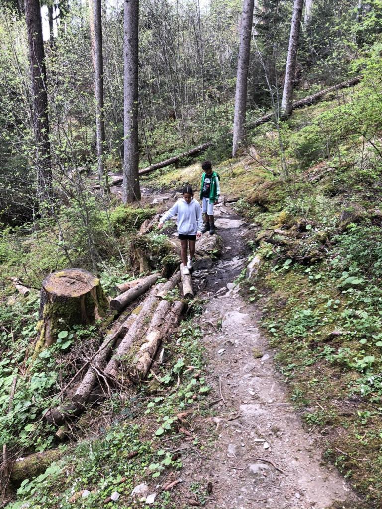 Der Runterweg ist für die Kids eindeutig der feinere Weg, leider hat Sara ein wenig Weh im Knie, aber gemütlich erreichen wir doch wieder den Talgrund.