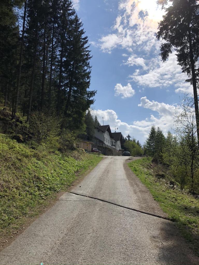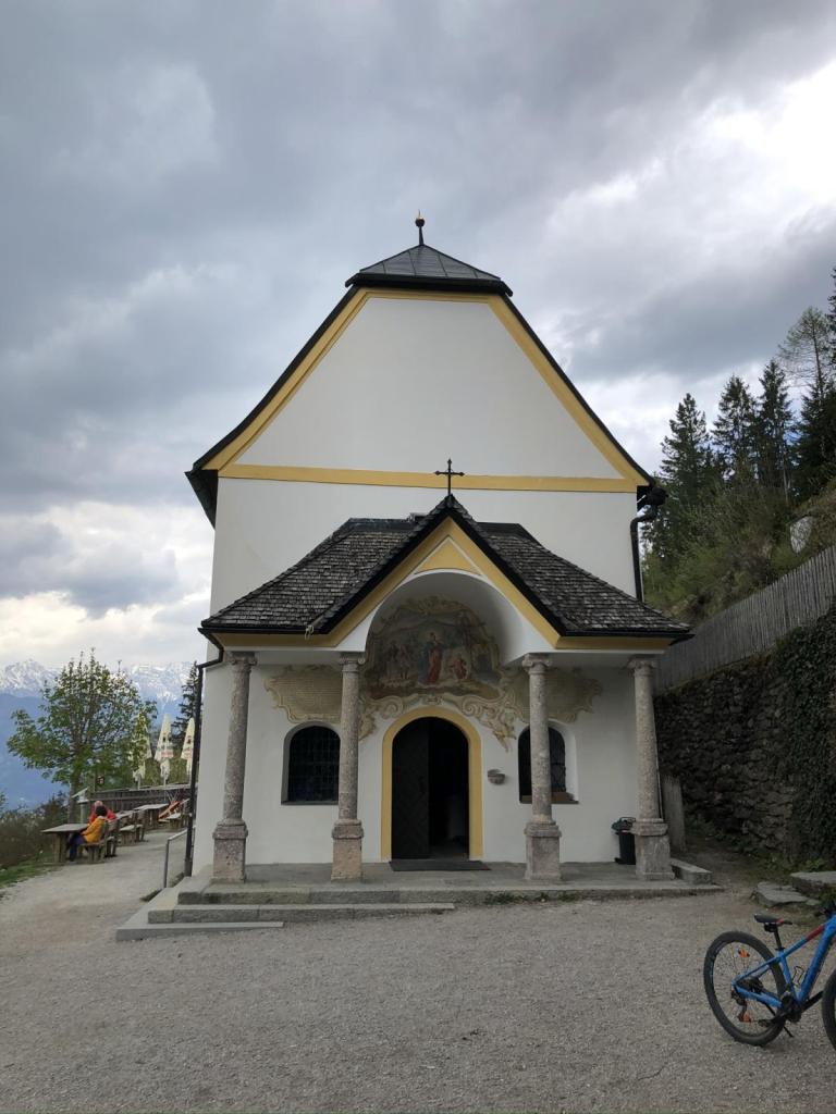 Nun flacht der Weg ab, wir sehen hinunter auf die Bobbahn und die Heiligwasserwiese, der kleine Skilift für Anfänger. Und schlußendlich erreichen wir die Wallfahrtskirche Heiligwasser. Leider ist der Gastbetrieb aktuell ruhend gestellt, trotzdem ist der Platz einfach magisch. Und die Kirche lädt zu einer kurzen Andacht ein…