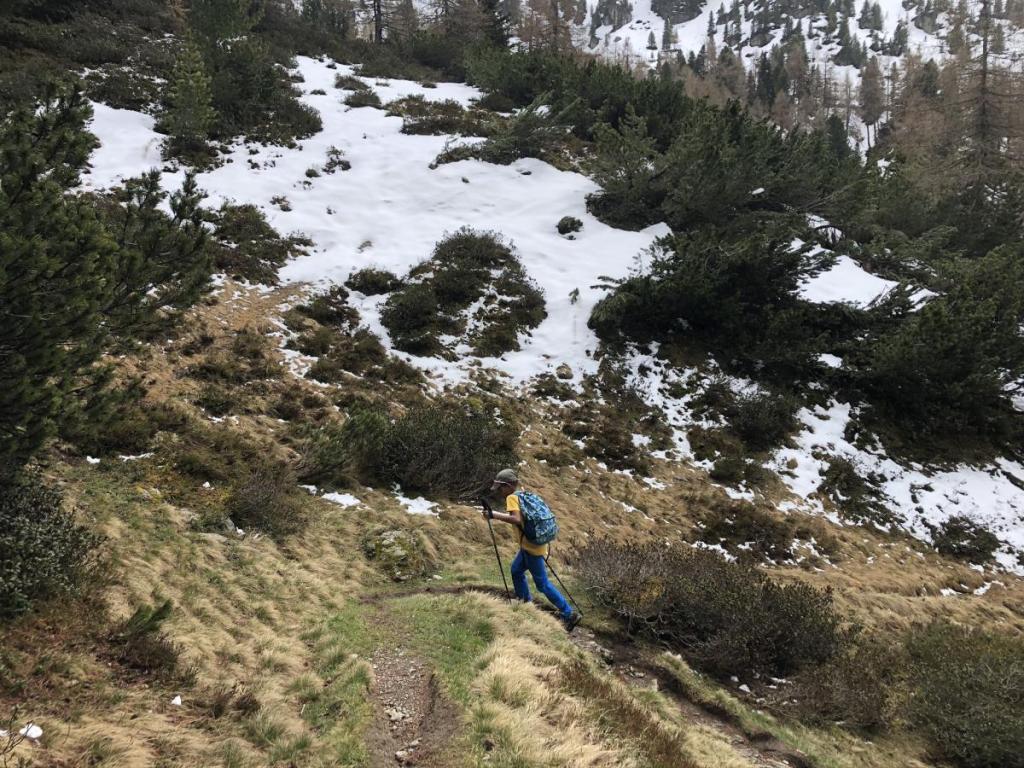 Kurz vor der Arztalalm erreichen wir auch die letzten Schneereste des Winters, die hier perdu nicht weg gehen wollen. Aber auch hier, im schroffen Arztal wird der Winter nicht mehr lange bleiben können.