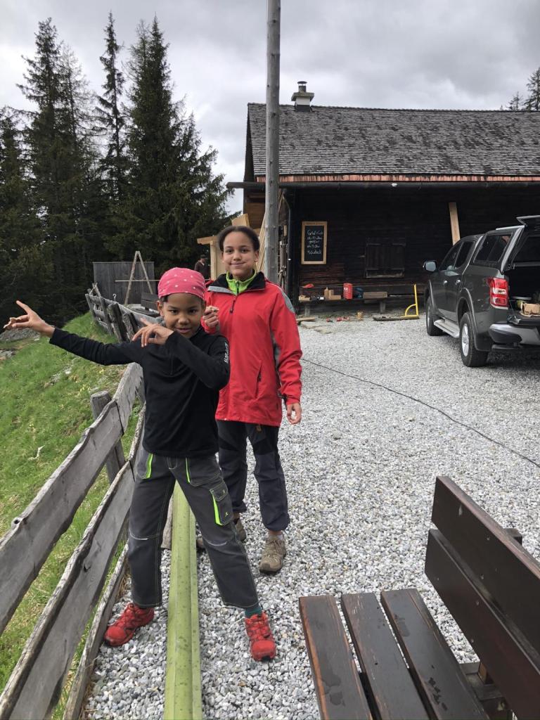Steil zieht der Weg durch den Wald, Sara hat schon fast die Lust verloren, als wir endlich die Alm erreichen. Wir schon erwartet, die die Hütte geschlossen, aber ein paar Handwerker legen gerade noch Hand an. In zwei Wochen soll Eröffnung sein, um genauer zu sein, am 15. Mai. 2020… heuer mit neuer Pächterin! Wir sind schon gespannt…