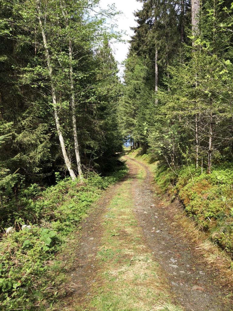 Nach einer Weile zweigen wir in den Wald ab, und suchen uns einen alternativen Weg hinauf zur Alm. Es sind hier so viele Wege, einige davon auch Downhill-Pisten, daß man sein Ziel eigentlich nicht verfehlen kann.