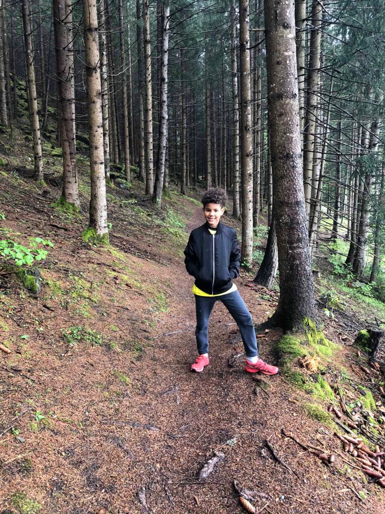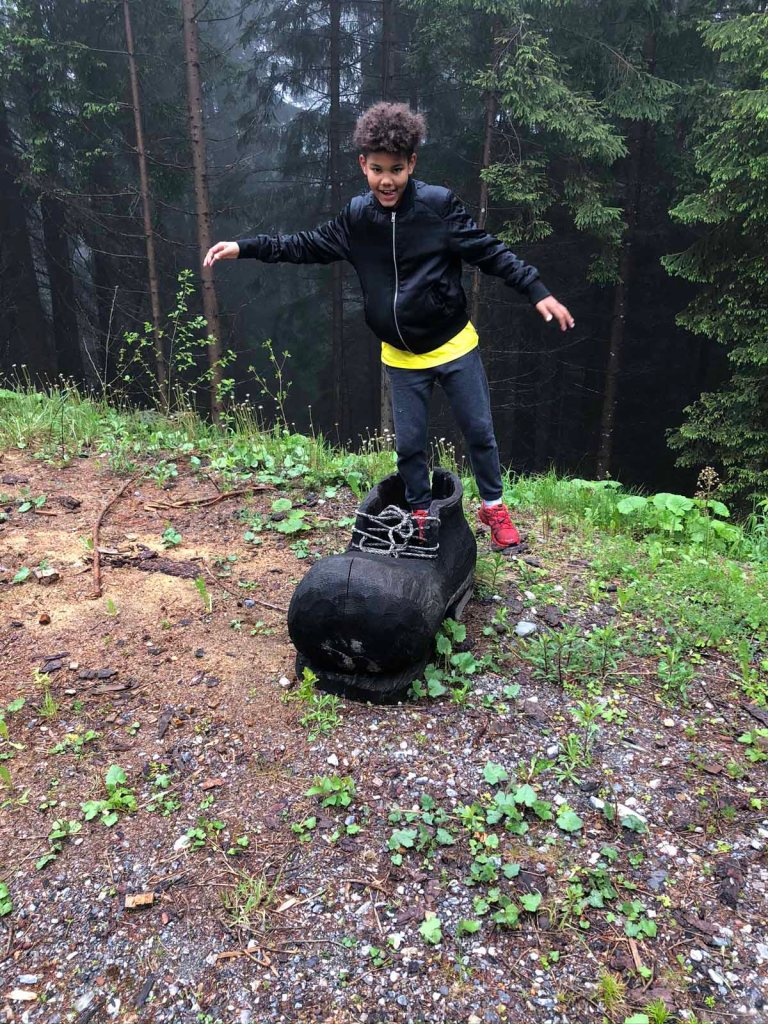 Beim Starthaus der Bobbahn machen wir eine kurze Pause, Letu jubelt den vertuellen Fahrern zu! Dann gehen wir über den Speckbacherweg zurück zum Ausgangspunkt. Eine schöne Wanderung mit mystischer Stimmung.