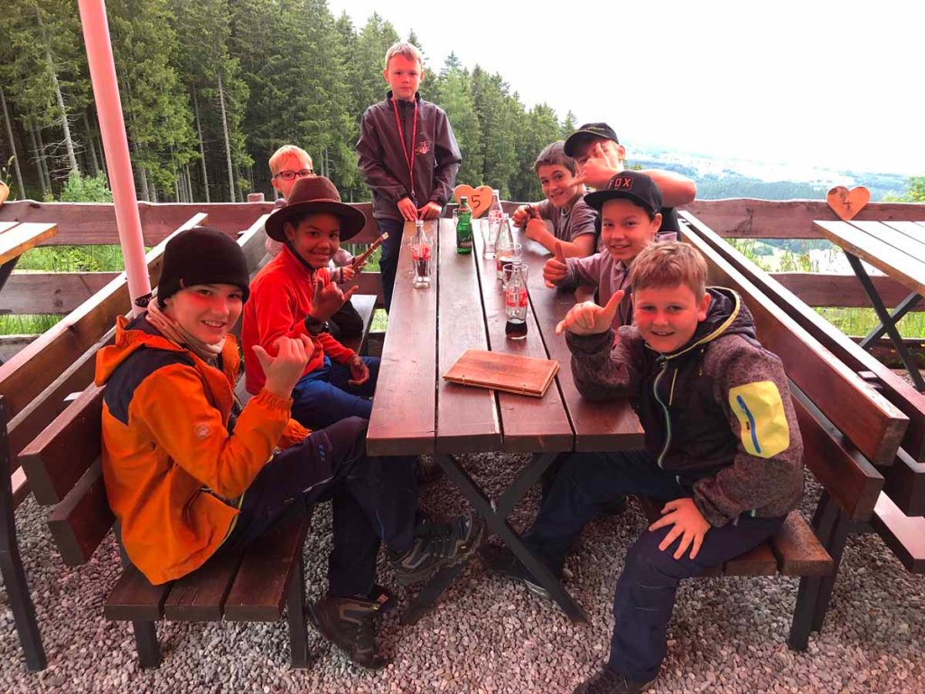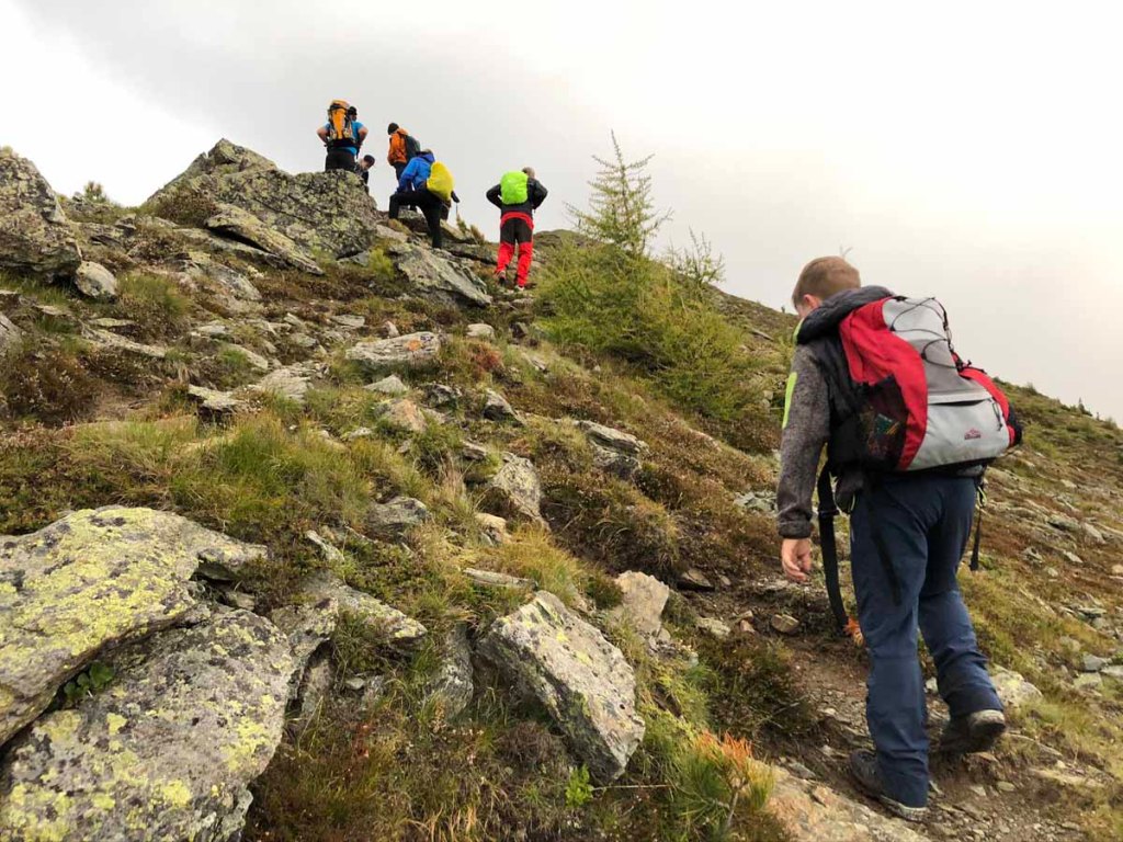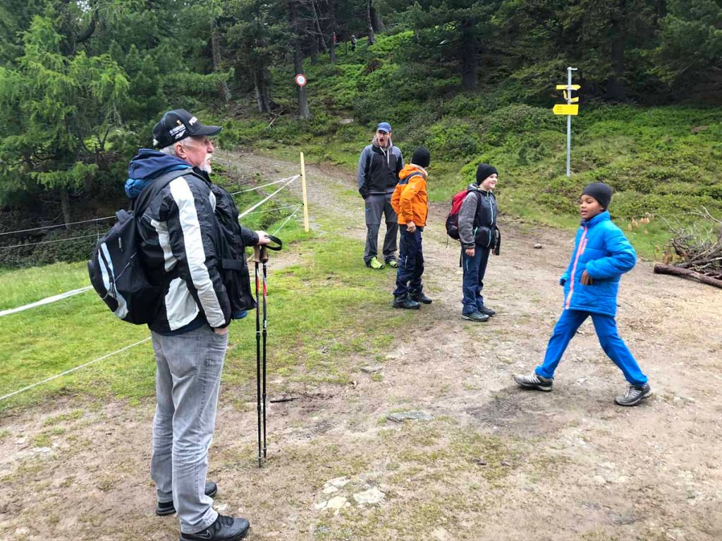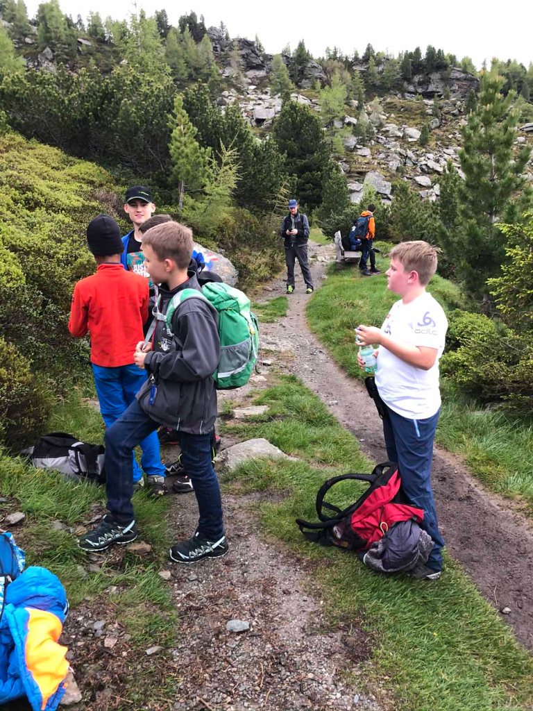 Da es nicht regnet, machen wir uns doch mit den Jungschützen und Junghuttlern auf, erstes Ziel, eine Jause auf der Aldranser Alm.