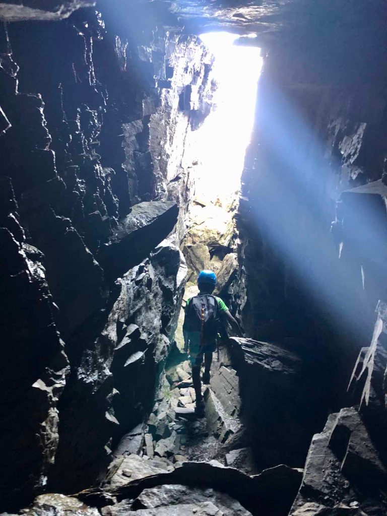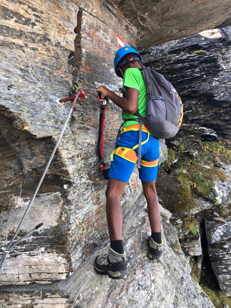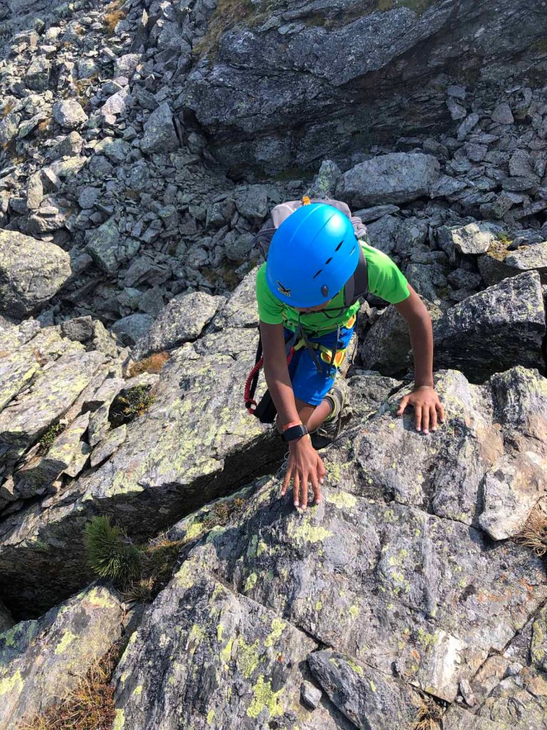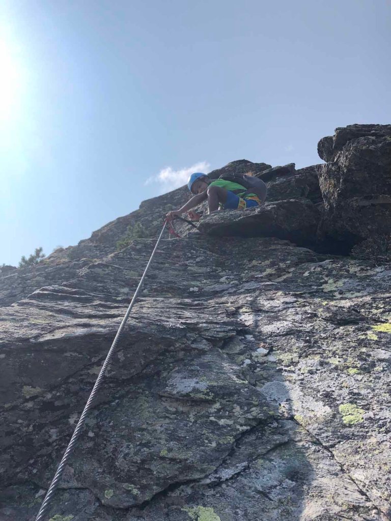 Der Klettersteig ist, wie die Beschreibung auch sagt, eigentlich eher ein Kraxelpark über Blöcke, durch Schründe und Schluchten… viel Klettersteig ist nicht vorhanden, trotzdem macht es uns beiden richtig Spaß.