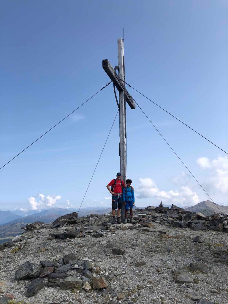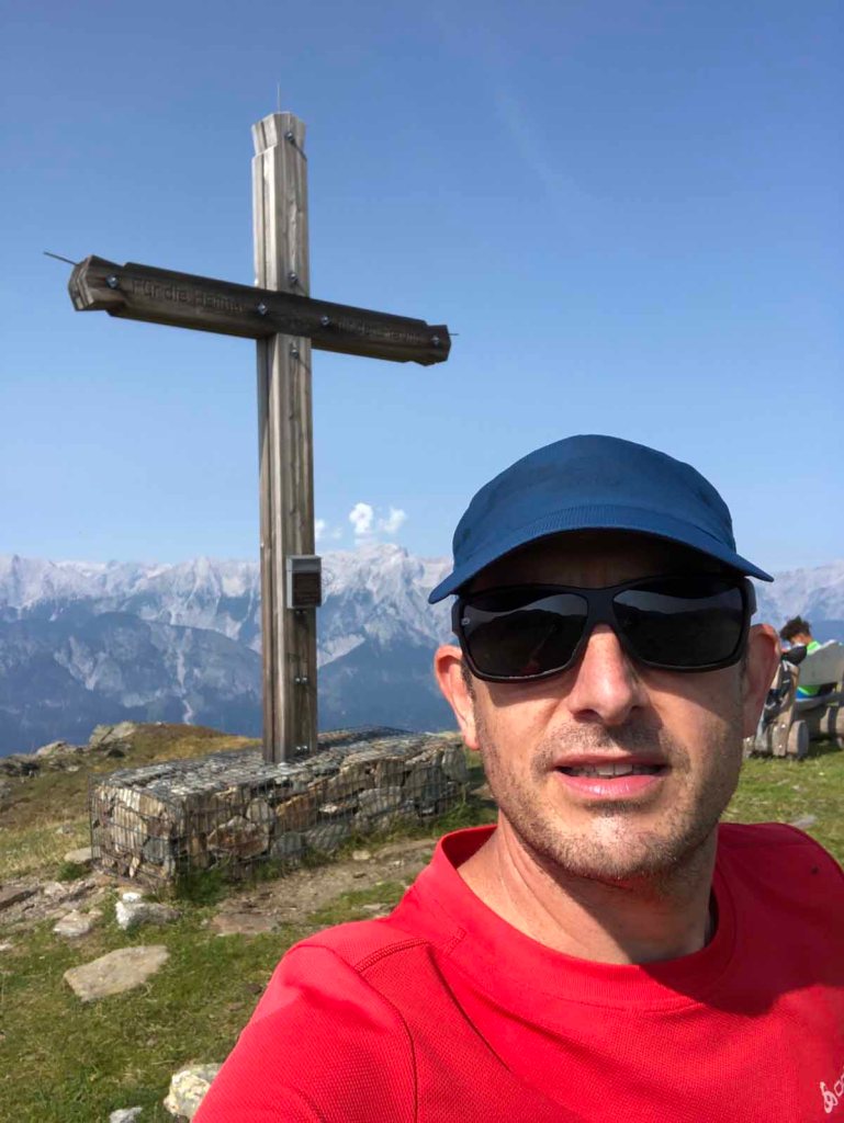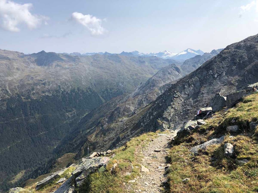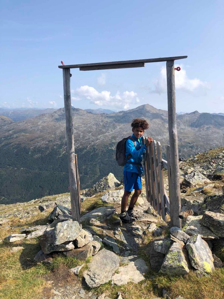 Schließlich erreichen wir das Tulfeinjöchl und kurz darauf den Schartenkogel. Hier pausieren wir noch einmal und genießen die Aussicht.