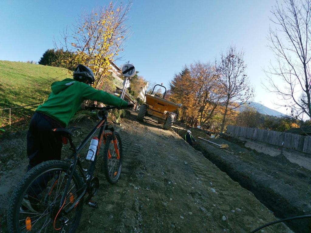 Da in Aldrans zur Zeit die Baustelle der Rinnerstraße besteht, müssen wir uns ein wenig durch die Baumaschinen schwindeln. Die Arbeiter sind jedoch sehr zuvorkommend und stoppen kurz die Arbeit, damit wir passieren können.