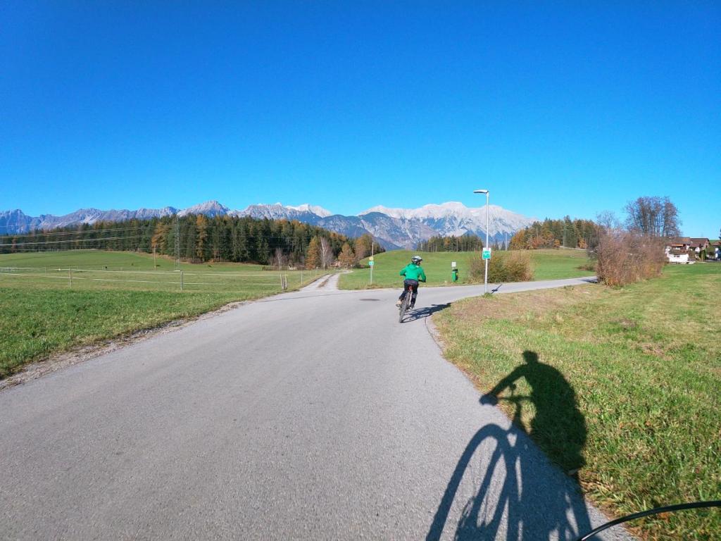 Die Strecke auf der vielbefahreren Straße ist kurz, dann zweigen wir ins wunderschöne Zimmertal ab, das uns wieder in Richtung Aldrans führt.