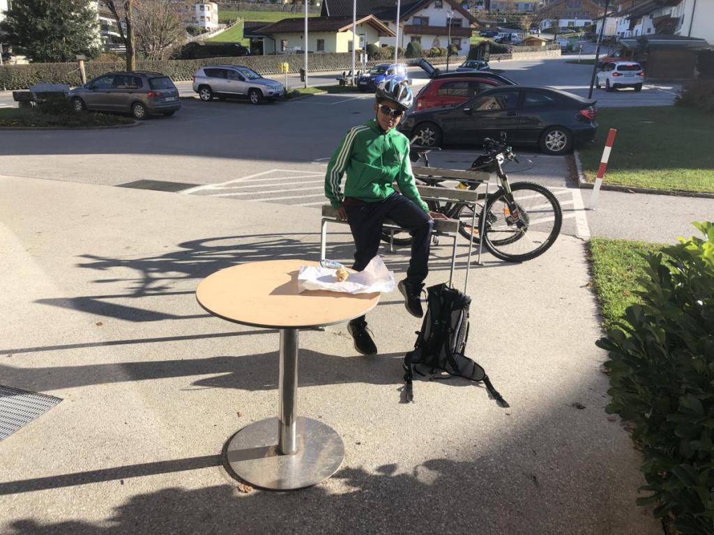In Tulfes machen wir eine kurze Pause, holen uns eine Jause beim Mini-Mpreis und genießen die Sonne.
