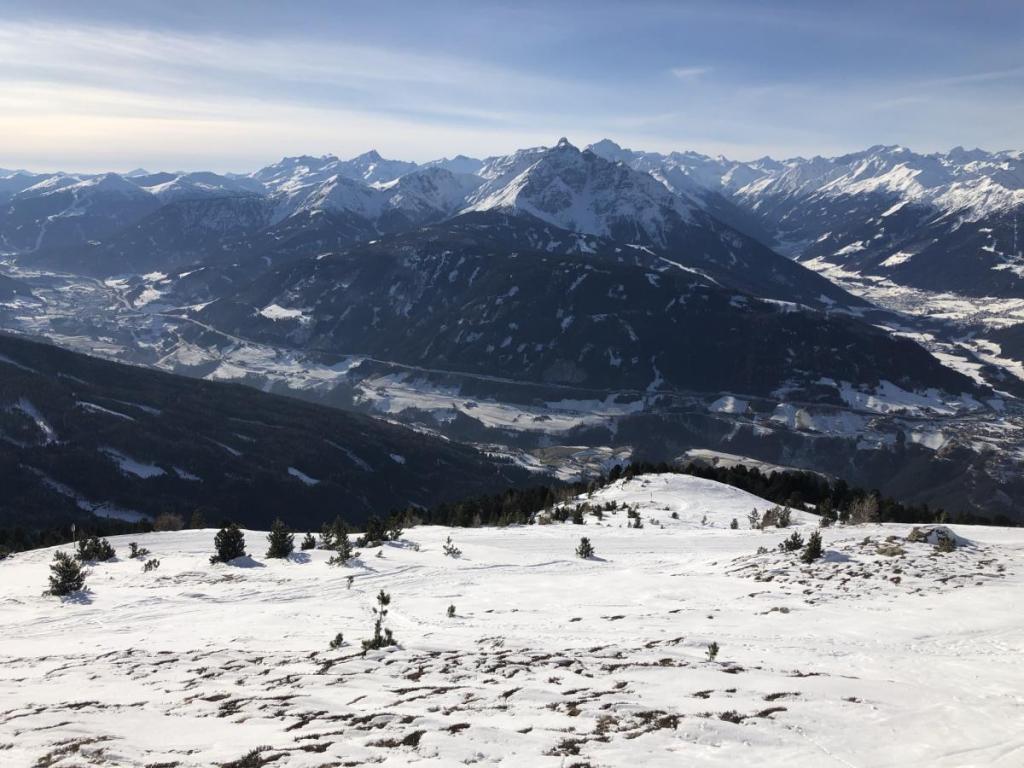 Noch ein Blick Richtung Stubai und Wipptal Richtung Brenner. Auch wenn der Schnee im Tal nicht so üppig ist, von hier aus gesehen gibt es mehr wie genug Tourenziele.