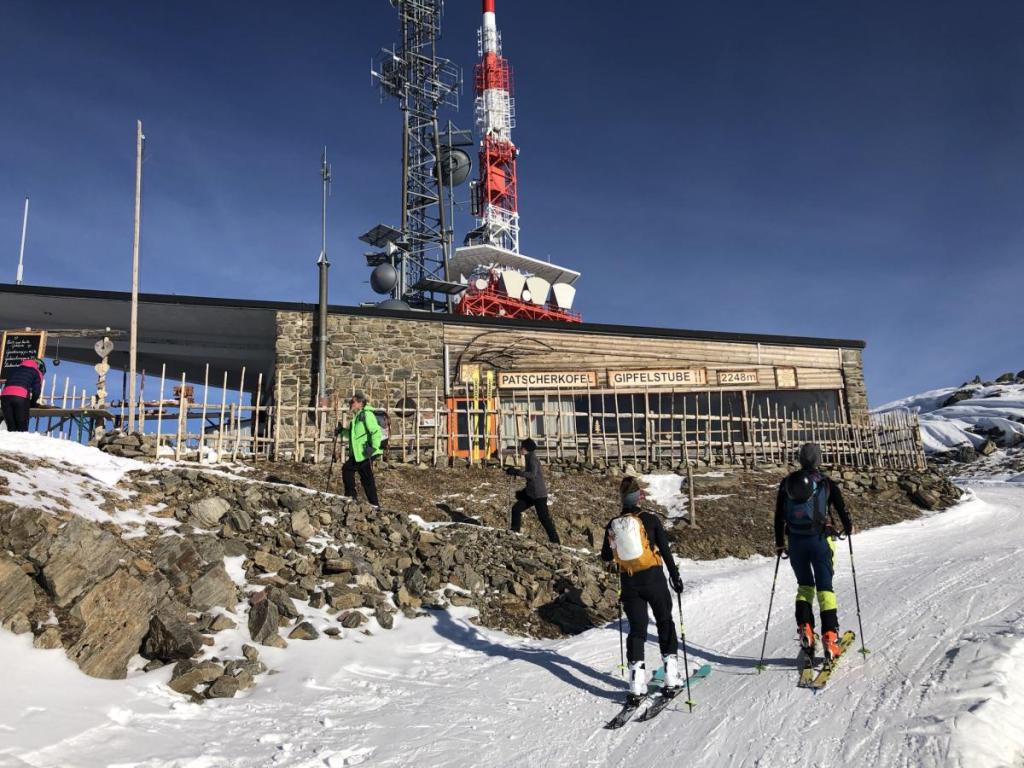 Schließlich stehe ich doch noch vor der Gipfelstube. Es ist ganz nett was los hier am Gipfel, aber das passt. Im Skigebiet verteilt sich der Trubel so gut, dass die „Mitbewerber“ gar nicht auffallen.