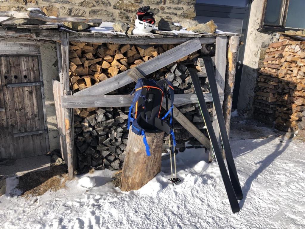 Ich suche mir ein windstilles Plätzchen in der Sonne, ziehe mich um und verstaue meine Felle. Obwohl es mir nicht kalt vorkommt, muss ich schon nach kurzer Zeit die Handschuhe wieder anziehen, es sticht ganz arg in den Fingerspitzen.