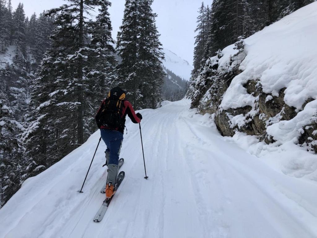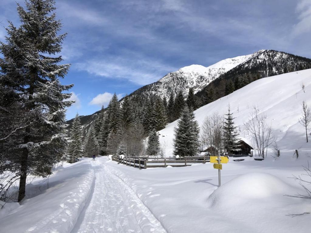 Direkt vom Parkplatz steigen wir auf der Forststraße auf Richtung Ehenbichler Alm. Ich muss zugeben, ich bin weder im Sommer noch im Winter je hier gewesen, also wird es endlich mal Zeit.