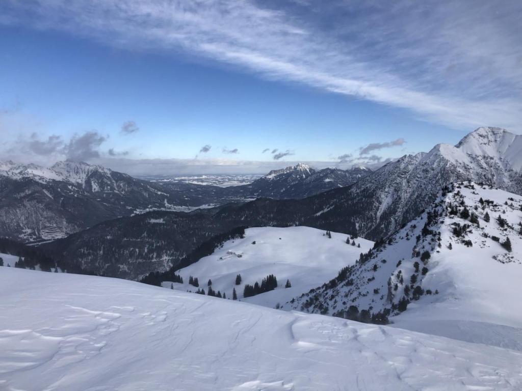 Ein Blick zurück überrascht mich dann vollends. Der Säuling (in der Bildmitte) in einer Perspektive, die ich so noch nie schauen habe können. Rechts im Bild ist der Thaneller und linker Hand die Tannheimer Berge.