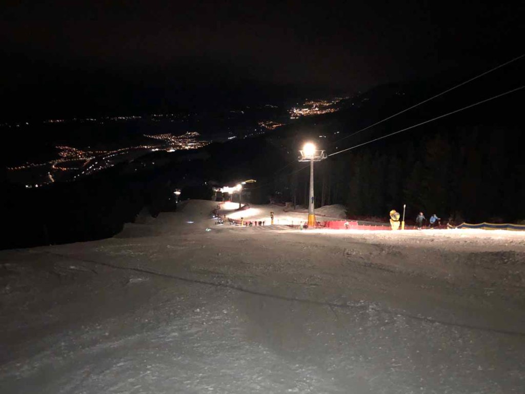 Die Abfahrt ins Tal ist heute lustig, obwohl die Piste knollig ist und teilweise schon leichte Tendenzen zur Eisbildung hat. Da ich relativ früh am Weg war, hatte ich mit der Menge an Mitläufern kein Problem… nun sieht die Sache ein wenig anders aus, Karawanen steigen am Pistenrand empor… dennoch läuft alles sehr zivilisiert ab. Hut ab vor der Disziplin.