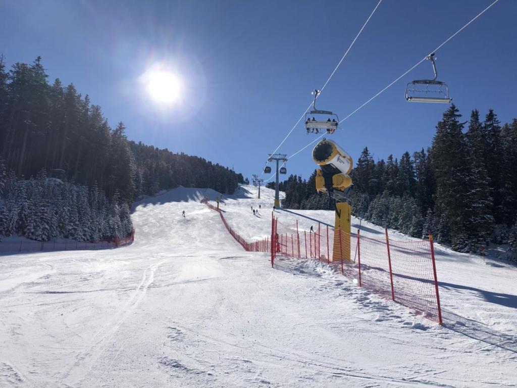 Da ich recht früh dran bin, und die Temperaturen weit unter dem Gefrierpunkt sind, ist auf im Skigebiet fast nichts los.
