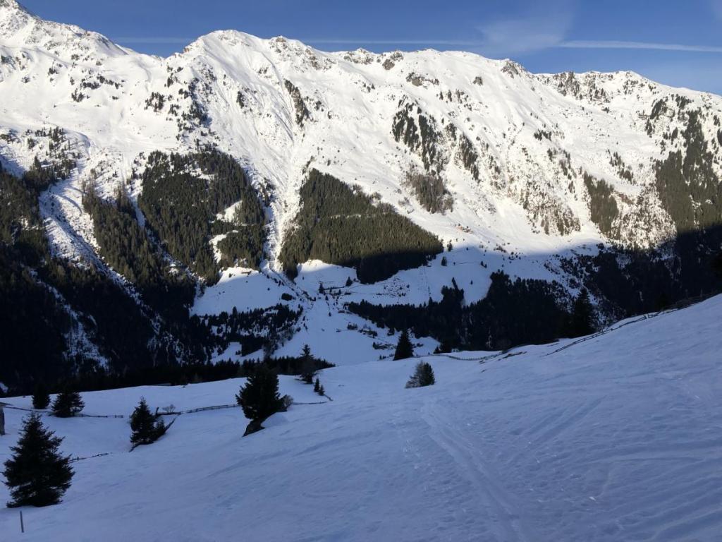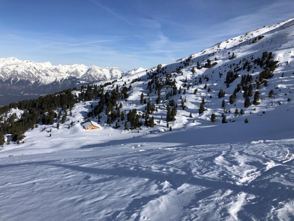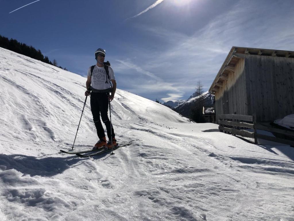 Im oberen Bereich ist die Abfahrt relativ lustig, je weiter wir ins Tal kommen, desto schwerer wird der Schnee und desto kraftraubender werden auch die Kurven. Dennoch macht die Abfahrt Spaß.