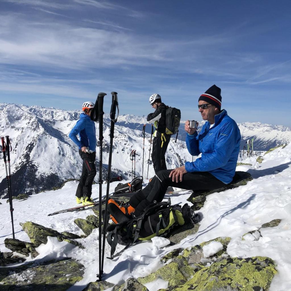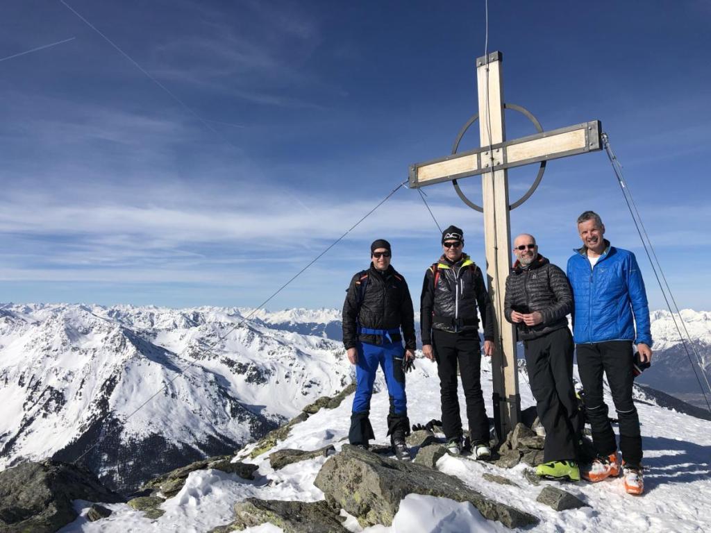 Wir sind fast eine Stunde auf dem Gipfel, so gemütlich ist es schon lange nicht mehr gewesen. Irgendwann wird es allerdings doch Zeit für die Abfahrt…