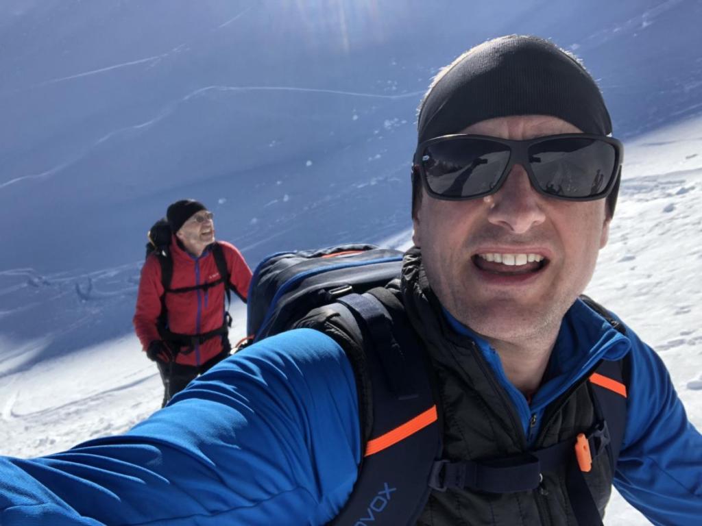 Mit jedem Schritt wird es wärmer, doch nun sind es wirklich nur noch ein paar Meter zum Gipfel. Eigentlich ist es ja gar kein richtiger Gipfel, ein Vorgipfel, der aber als Ende dieser Skitour angesehen wird
