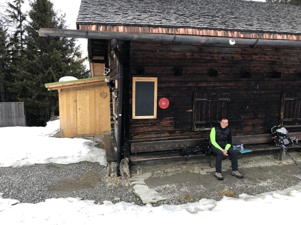 Dann stehen wir vor der gemütlichen Hütte. Hoffentlich auch bald wieder geöffnet, und wieder zu einer feinen Einkehr einladend.