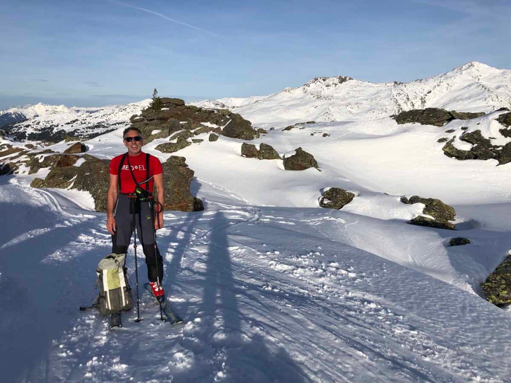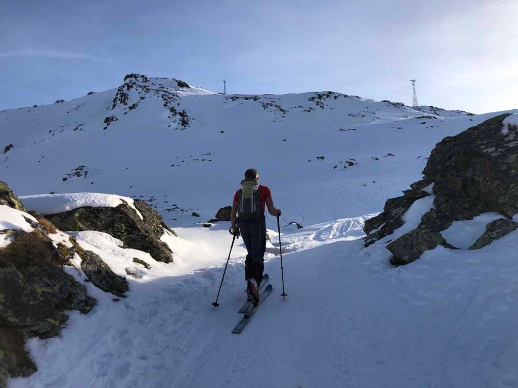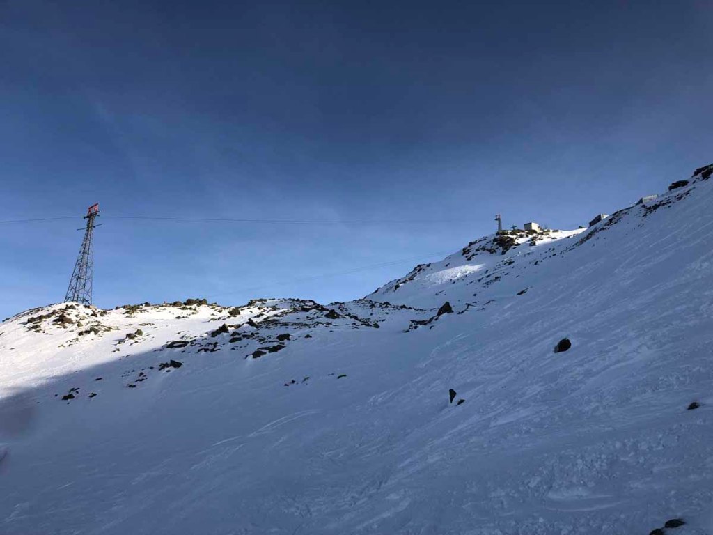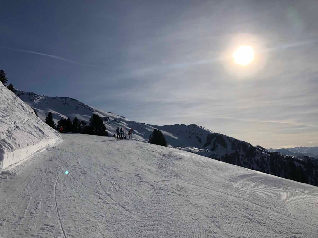 Da aktuell das FIS-Rennen stattfindet, wurden wir vom zuvorkommenden Liftpersonal informiert, nicht die Piste, sondern die Skitourenroute zu verwenden. Und speziell bei der Abfahrt sollten wir auf entgegenkommende Ratracks achten.