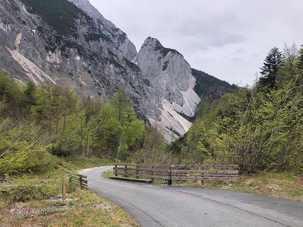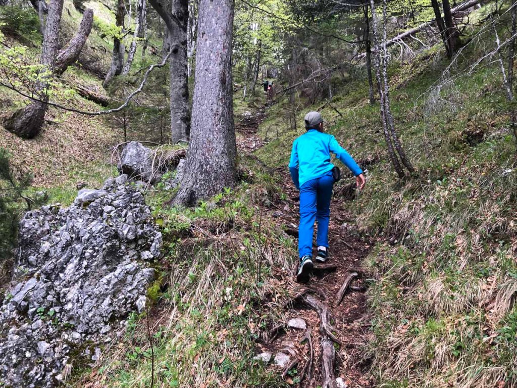 Da wir nicht gerade früh aufgebrochen sind, finden wir den Parkplatz Hackl schon gut belegt vor, dennoch können wir einen Parkplatz ergattern. Den ersten Teil bestreiten wir, wie fast immer, auf dem Fluchtsteig, ein wenig erhöht über der eigentlichen Salzstraße.