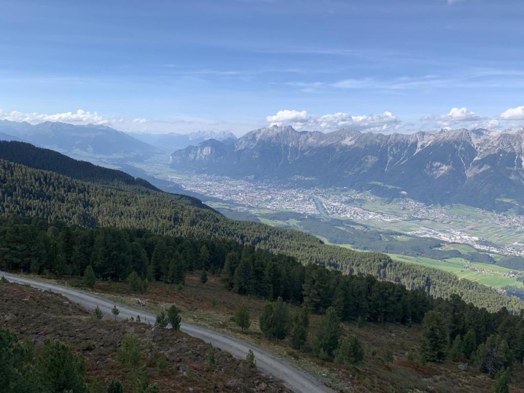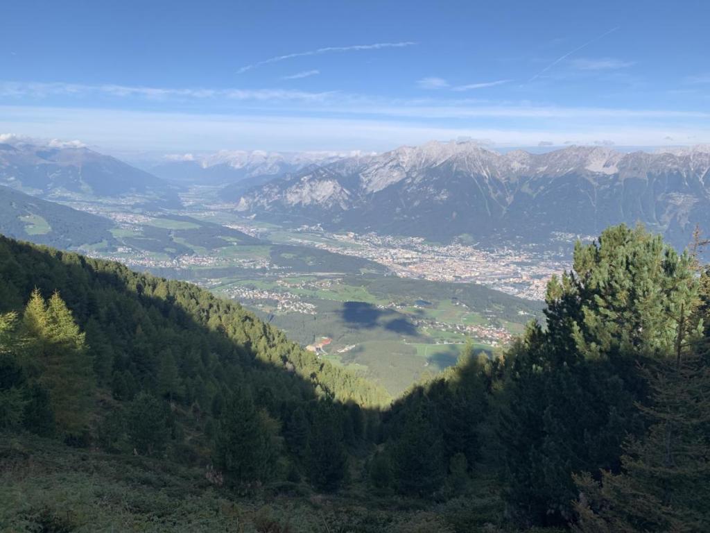 Die Luft ist heute zwar nicht ganz so klar, aber die Fernsicht trotzdem noch mehr als akzeptabel. Das Unterinntal, vom Zirbenweg aus gesehen ist auch immer wieder einen Blick wert. Am Bild sieht man im Vordergrund die Neunerspitze, im Hintergrund, ziemlich in der Bildmitte das Kellerjoch. Links sind die Ausläufer des Karwendel sichtbar.