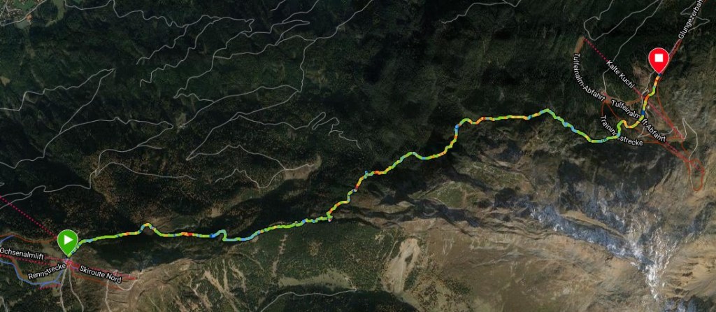 Bei der Bergstation der Patscherkofelbahn spüren wir, es ist relativ kühl, Letu zieht sogar Handschuhe an, so frisch ist es. Die Sonne scheint hier erst in den späteren Morgenstunden.