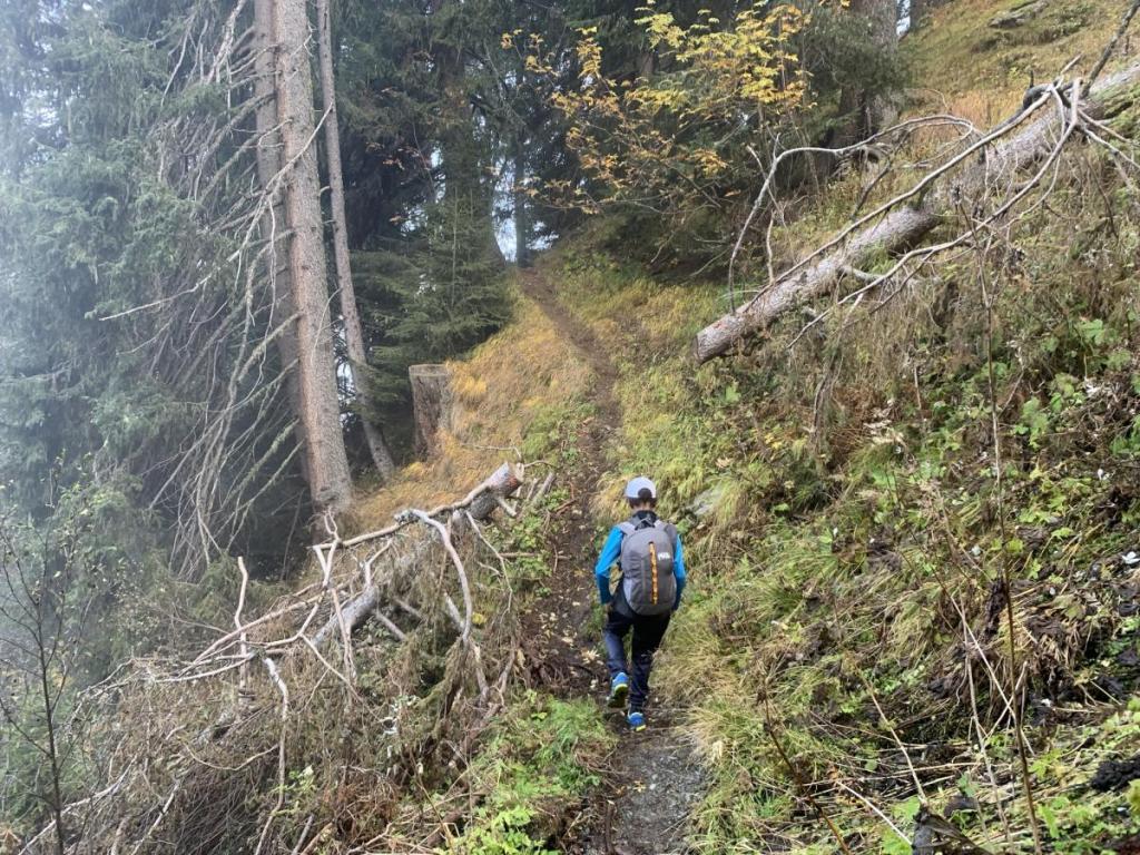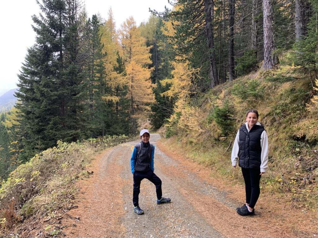 Wieder müssen wir ein gutes Stück auf einer Forststraße spazieren, der langweilige Hatsch wird durch Spiel und Erzählungen versüßt.