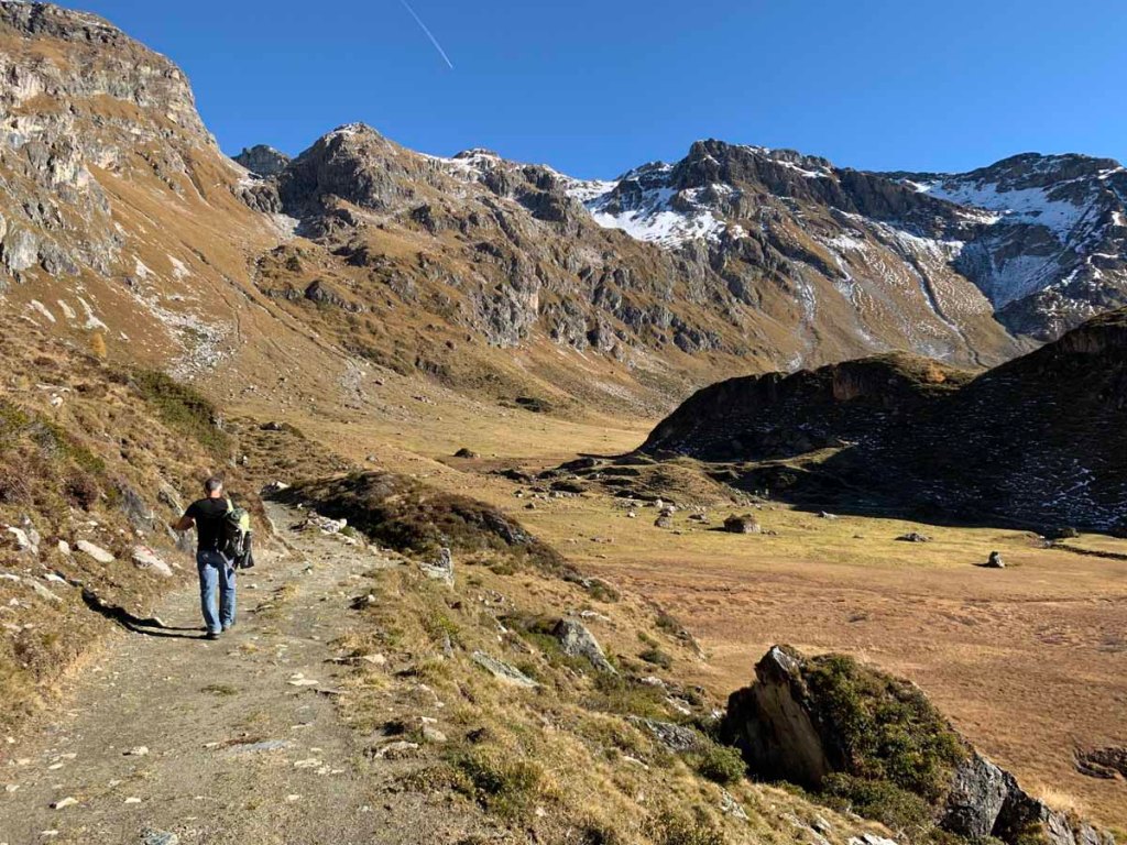 Der Pfad führt uns weiter, fast bis zum Talende. Bei einem kleinen Bergsee, der ganz in der Nähe vom Klammjoch (2.359m) liegt, zweigen wir ab und wandern wieder Talauswärts.