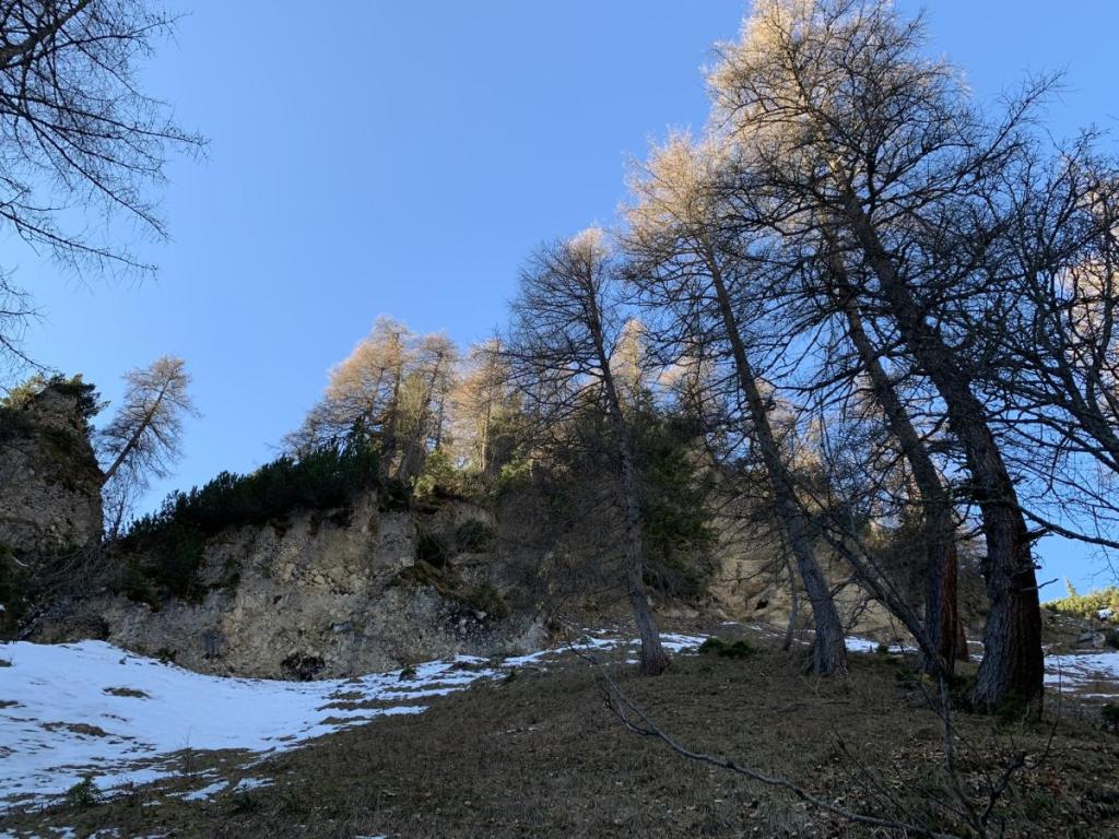 Schatten, verursacht durch den Thaurer Zunterkopf lässt den Schnee hier nicht mehr abschmelzen, der wird die noch magere Unterlage für einen hoffentlich schneereichen Winter bilden.