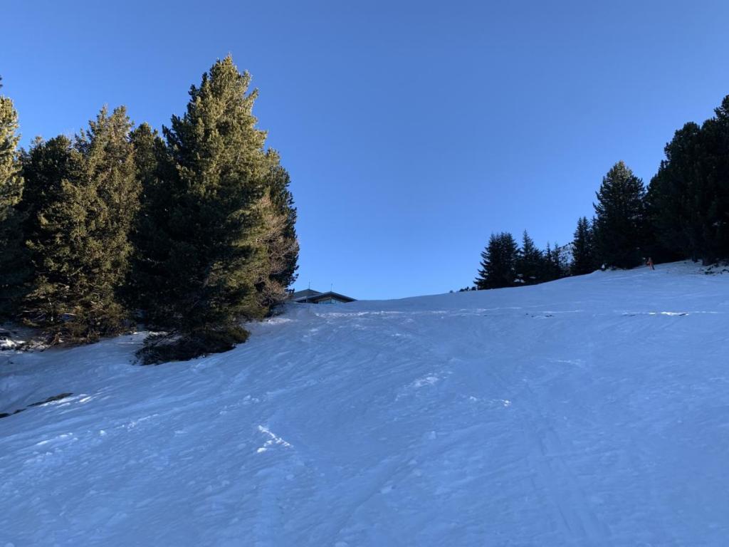 Die Piste ist hart, aber griffig, die Fahrt dementsprechend rasant. Schnell erreiche ich die Talstation. Allerdings muss ich feststellen, dass eben noch nicht alle Pisten präpariert sind. Die Olympiaabfahrt „Variante“ ist noch gesperrt, ebenso wie die von mir begangene Rennstrecke und die linke Heiligwasserwiese. Es braucht noch ein mehr Schnee…