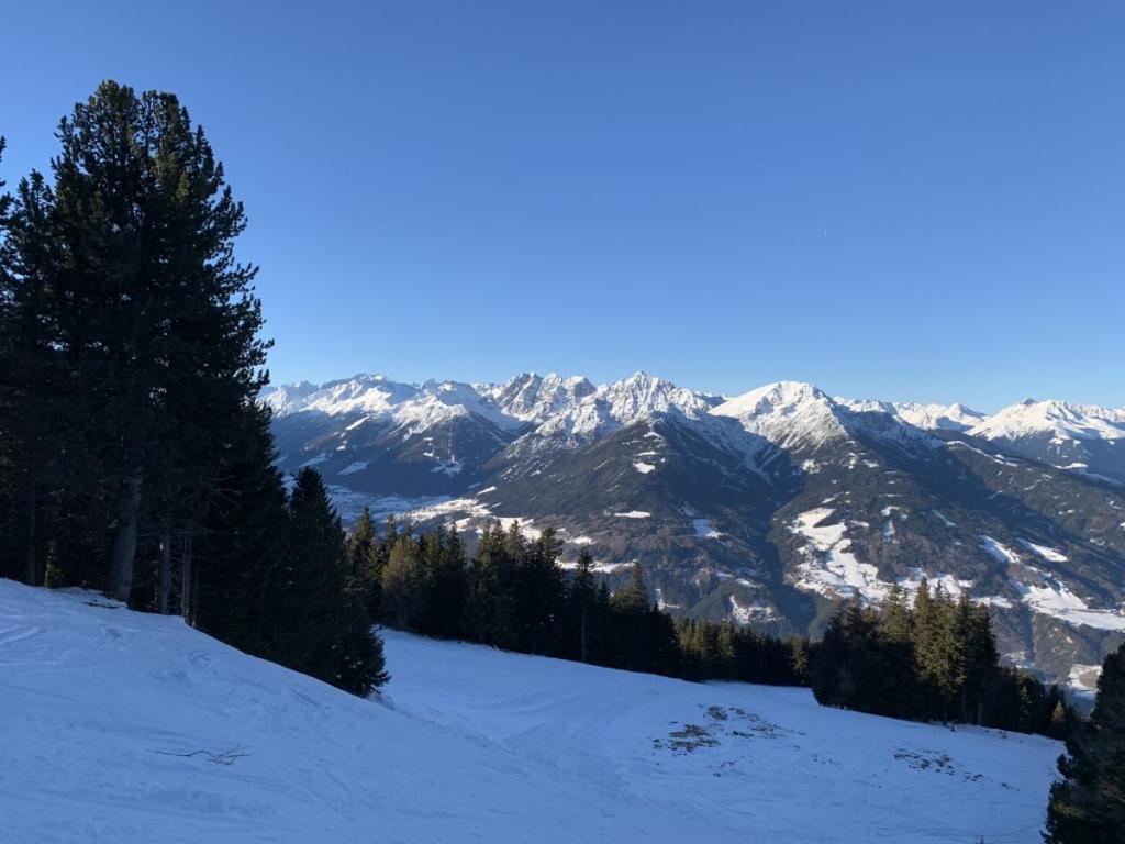 Ein Blick Richtung Stubai zeigt die Serles, die Gletscher im Hintergrund, und die Nockspitze.