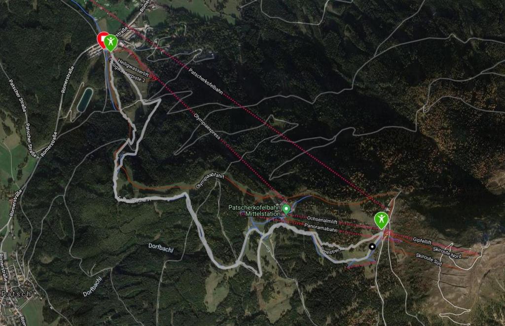 Ich habe den Aufstieg über die Olympiaroute gewählt, steil macht man hier rasch Höhenmeter, bei der Abzweigung zur Familienabfahrt nehme ich die Route zur Patscher Alm.