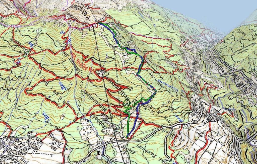 Über die nicht präparierte Rennstrecke steige ich in direkter Linie auf zur Bergstation.