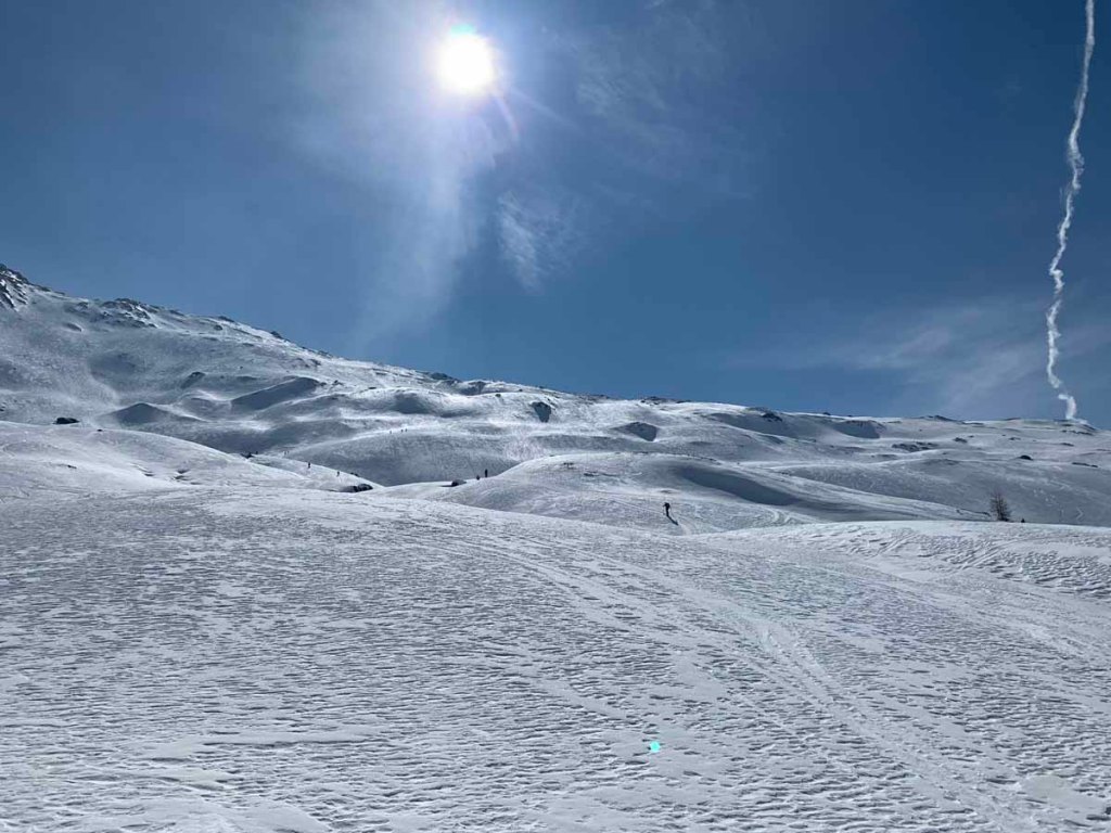 Die Schneequalität ist nicht erste Sahne, aber das fahren geht trotzdem überraschend gut.