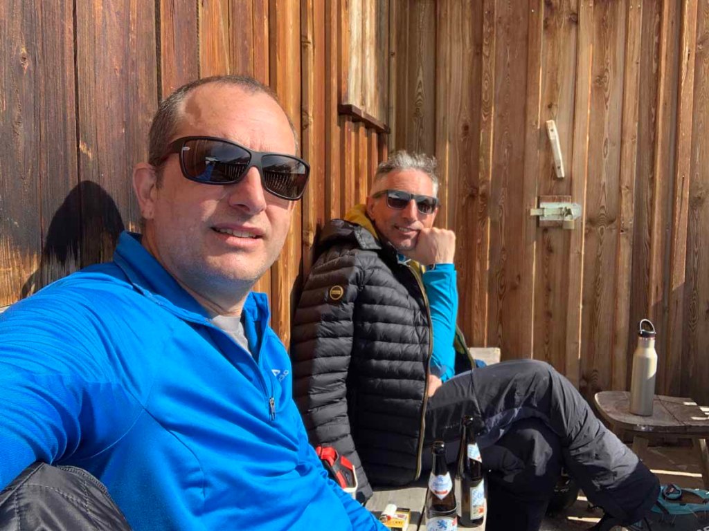 Die Pause genießen wir heute ausführlich lange, aber es ist so gemütlich hier, man mag gar nicht weg. Die Hütte ist zwar geschlossen, aber Wolfi hat vorgeplant und zwei kleine Bier mitgebracht… die runden die feine Rast perfekt ab.