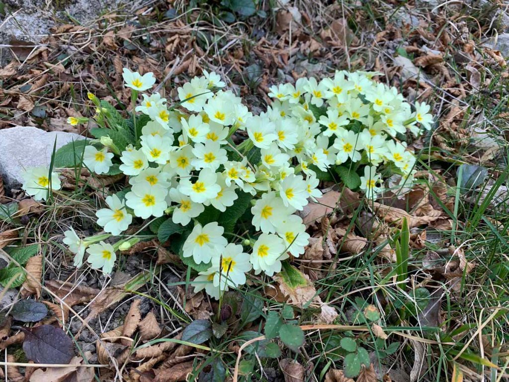 An einigen geschützten, sonnigen Stellen blühen schon die ersten Primeln. Es muss sich hier um eine eigene Art handeln, die Blütenkelche sind fast doppelt so groß wie die mir gekannten Schlüsselblumen daheim…