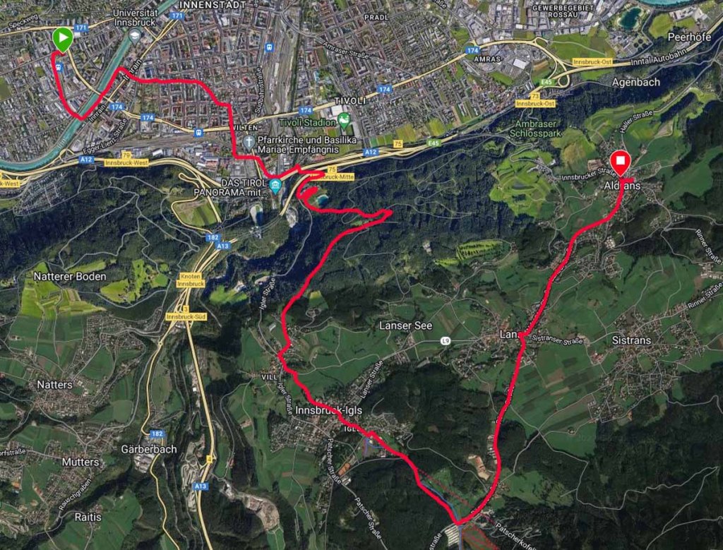 Hier endet mein kurzer Trip heute, nur noch die Abfahrt nach Aldrans steht an. Genussvoll rolle ich den Weg. Viel zu schnell bin ich wieder zu Hause, die Abfahrt ist halt doch fast das Schönste…