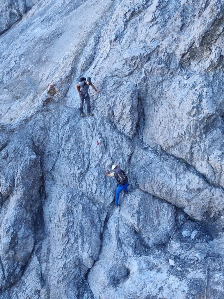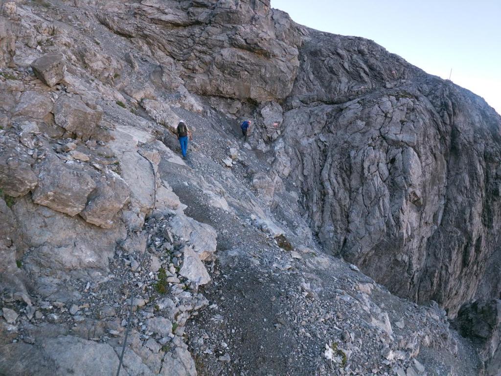 Die moralische Schlüsselstelle befindet sich kurz vor dem Gelben Schartl… kiesig, nicht versicherbar, und der Weg gerade mal Handbreit.