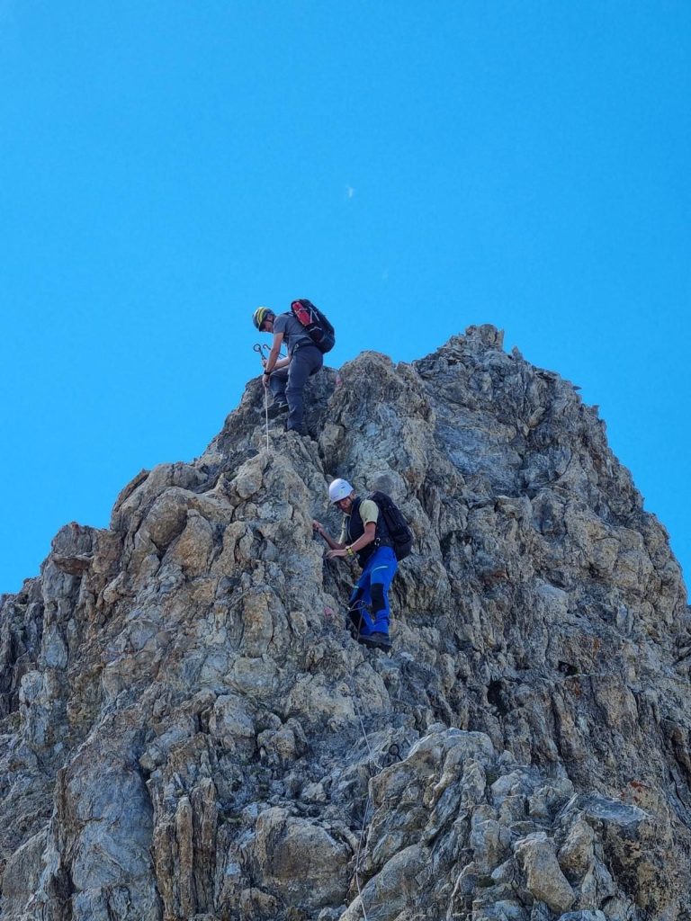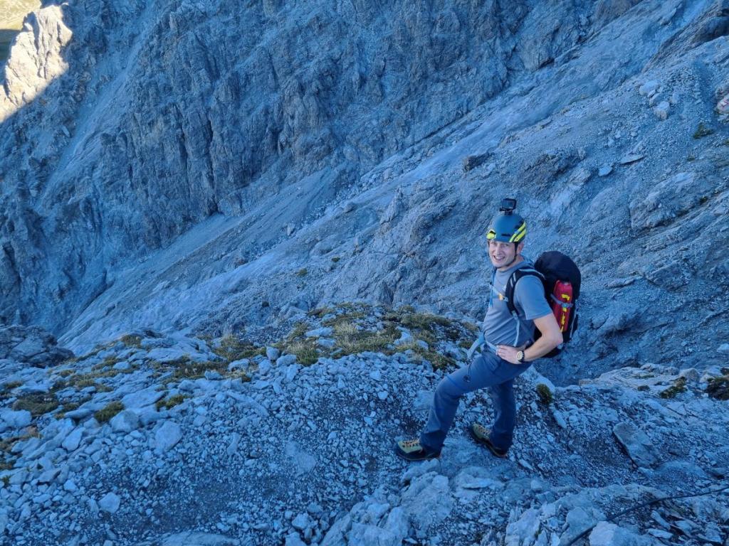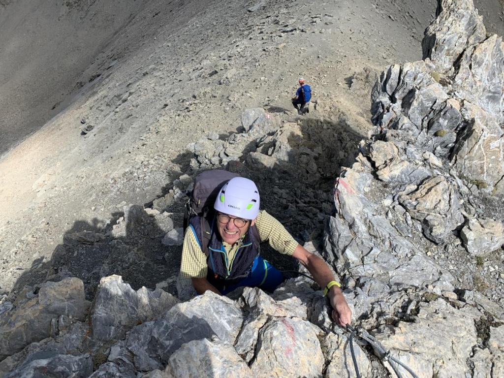 Ein kurzer versicherter Klettersteig bringt uns auf den höchsten Punkt unserer Tour.