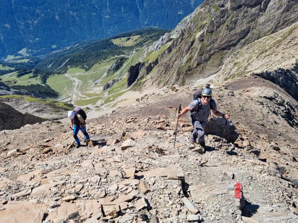 Der Abstieg erfordert nochmals höchste Konzentration, speziell nach einer längeren Pause stellt der Start eine kleine Herausforderung dar.