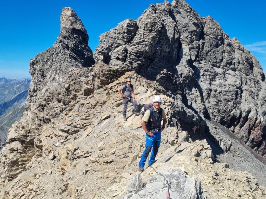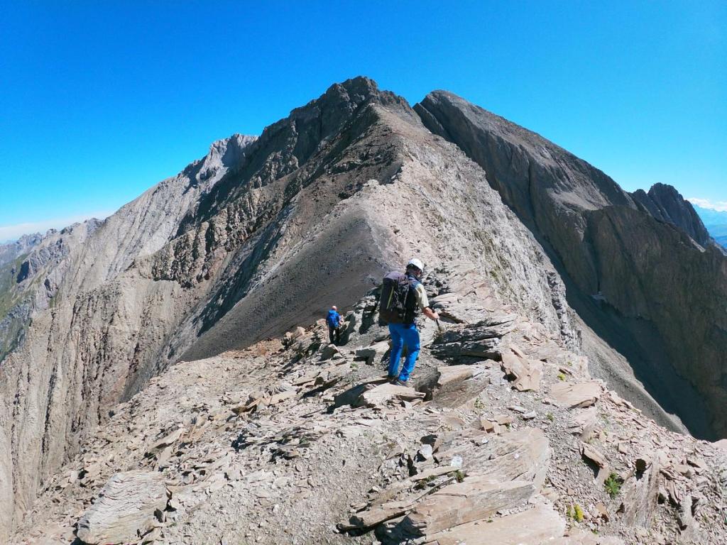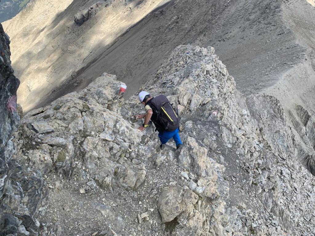 Der Abstieg ist spektakulär, aber überschaubar schwierig… richtige Genusskraxlerei am Grat entlang.