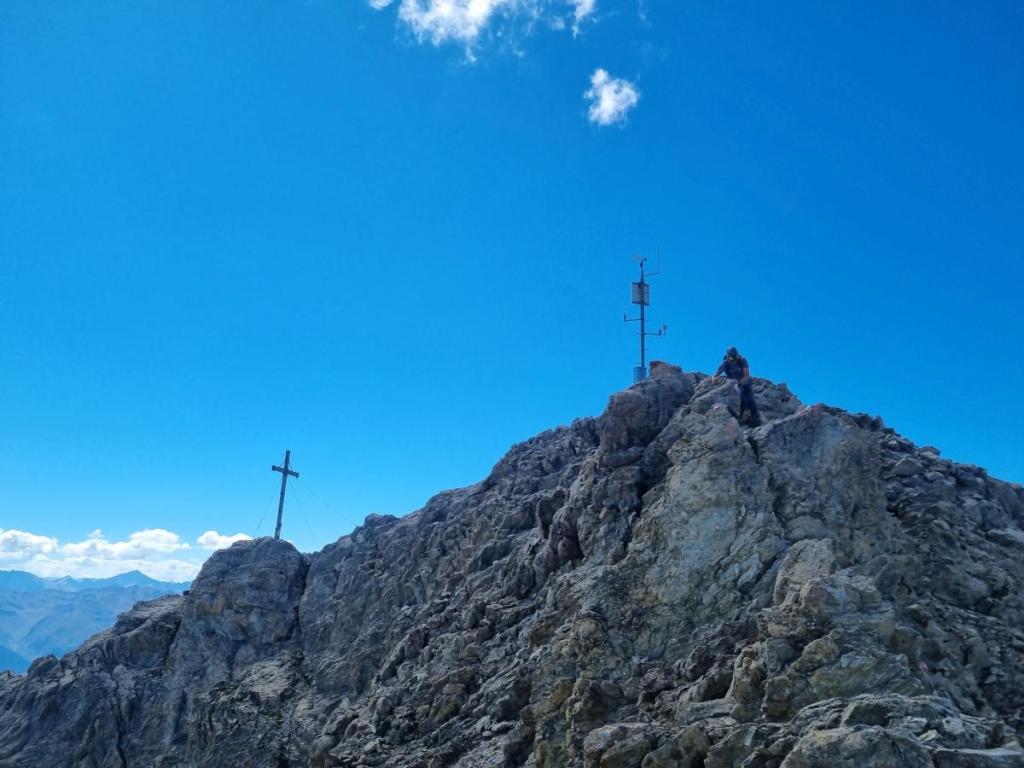 Am Gipfel treffen wir ein deutsches Pärchen, das sich nach einem erfolglosen Versuch an der Passeierspitze auch zum Abstieg zur Augsburger Hütte aufmacht.